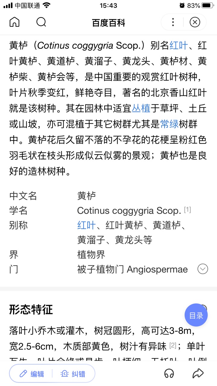 黄栌是现在公园景区常见的树种,它一年四季都有独特的美。春天,春天,云雾般的花枝弥漫在嫩绿的叶丛中;夏天,逐渐茂密的叶丛难掩那一片片云雾;秋天,它的叶子渐渐变黄变红,直到鲜艳欲滴;冬天,特别是雪后,树上残留的少许红叶更显风姿。