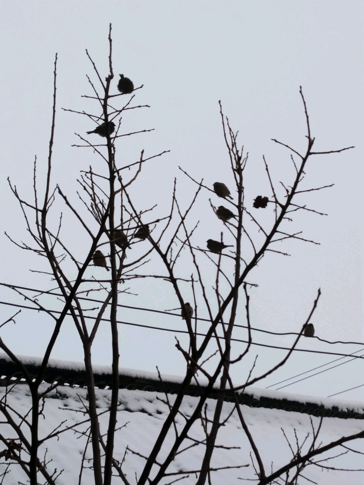 :这个肥嘟嘟的,一看就是麻雀呀!北方的冬天,就只有麻雀和喜鹊了。