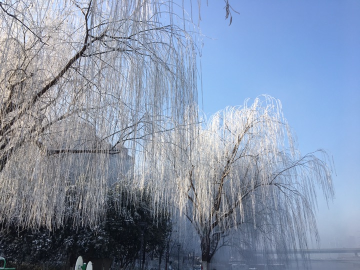 雾凇,俗称树挂,是低温时空气中水汽直接凝华,或过冷雾滴直接冻结在物体上的乳白色冰晶沉积物,是非常难得的自然奇观。雾凇非冰非雪,而是由于雾中无数零摄氏度以下而尚未凝华的水蒸气随风在树枝等物体上不断积聚冻粘的结果,表现为白色不透明的粒状结构沉积物。雾凇形成需要气温很低,而且水汽又很充分,同时能具备这两个形成雾凇的极重要而又相互矛盾的自然条件更是难得。