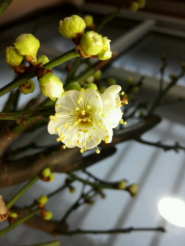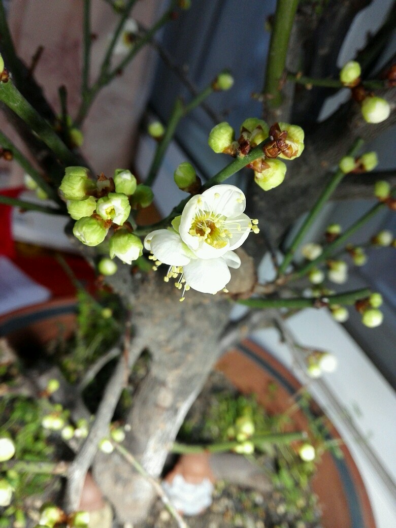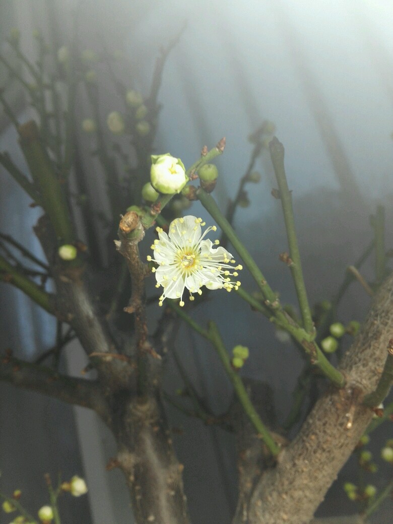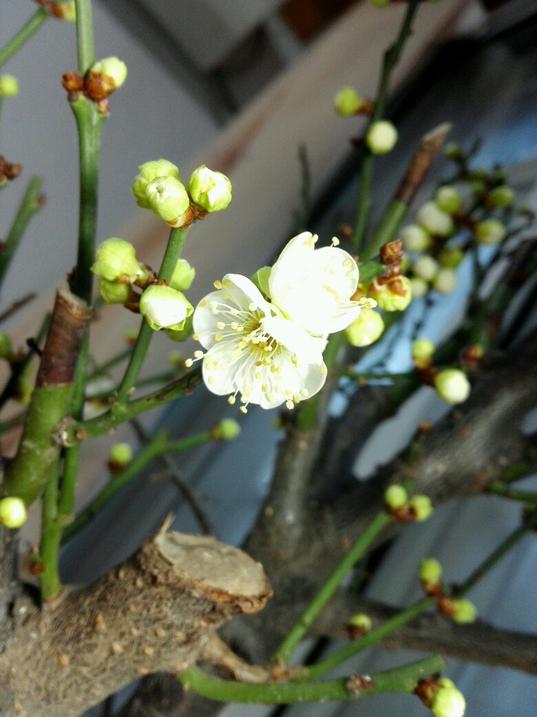 早盼江梅爆红湿。然苞如是,绿若兰芝,喜得翡翠生羊脂。