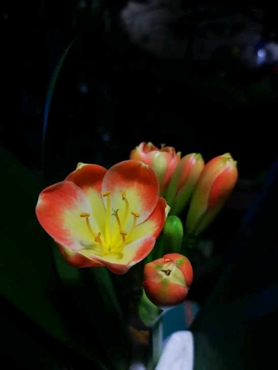 伺候君子兰开花太不容易了,有点夹剑,总算还是开花了!