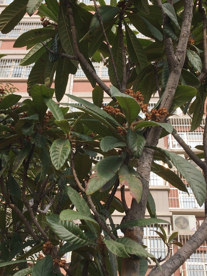 枇杷主要产于我国东南部,花期10—12月,果期5—6月。可是时置寒冬腊月,在北方也见到青枝绿叶,花枝丛生的枇杷树。不知道能不能结枇杷果?期待!