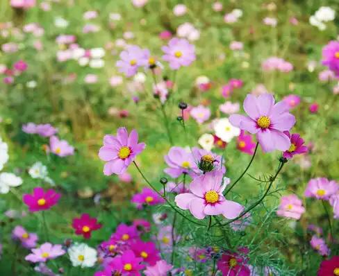 3.幼苗具4-5片真叶时移植,并摘心, 也可直播后间苗。如栽植地施以基肥, 则生长期不需再施肥,土壤若过肥,枝叶易徒长,开花减少。 7-8月高温期间开花者不易结子。种子成熟后易脱落, 应于清晨采种。波斯菊为短日照植物, 春播苗往往叶茂花少, 夏播苗植株矮小、整齐、开花不断。