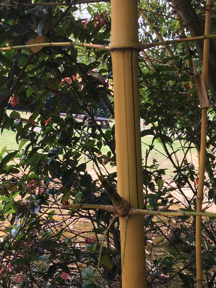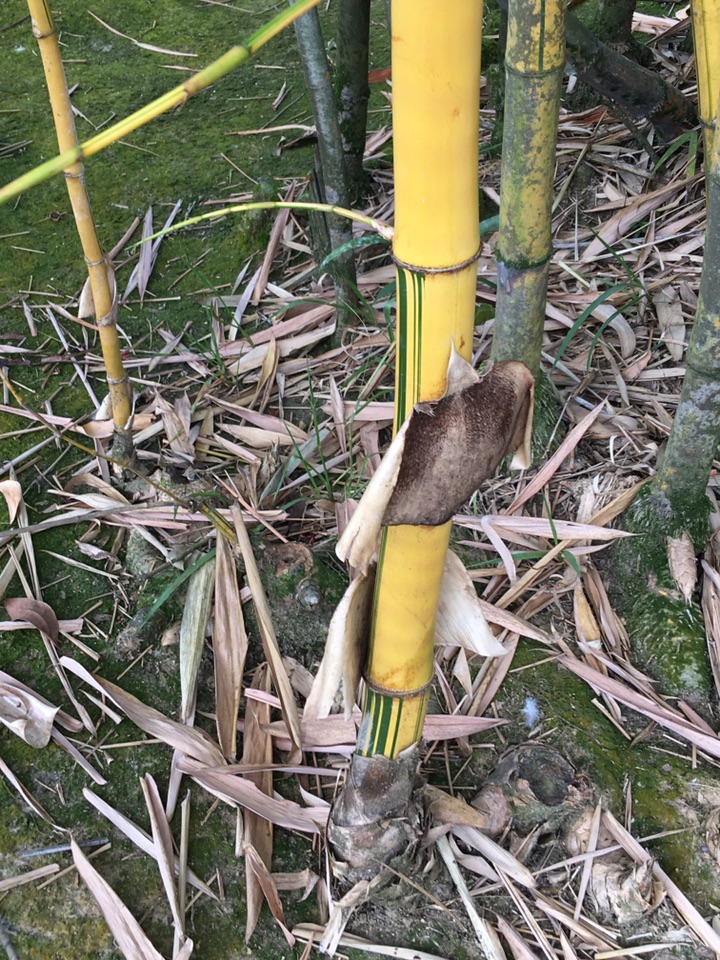 几天前看到了一种特具特色的竹子。它它枝叶翠绿,主干金黄,每节之间都有几条笔直的绿色条纹,格外引人注目。