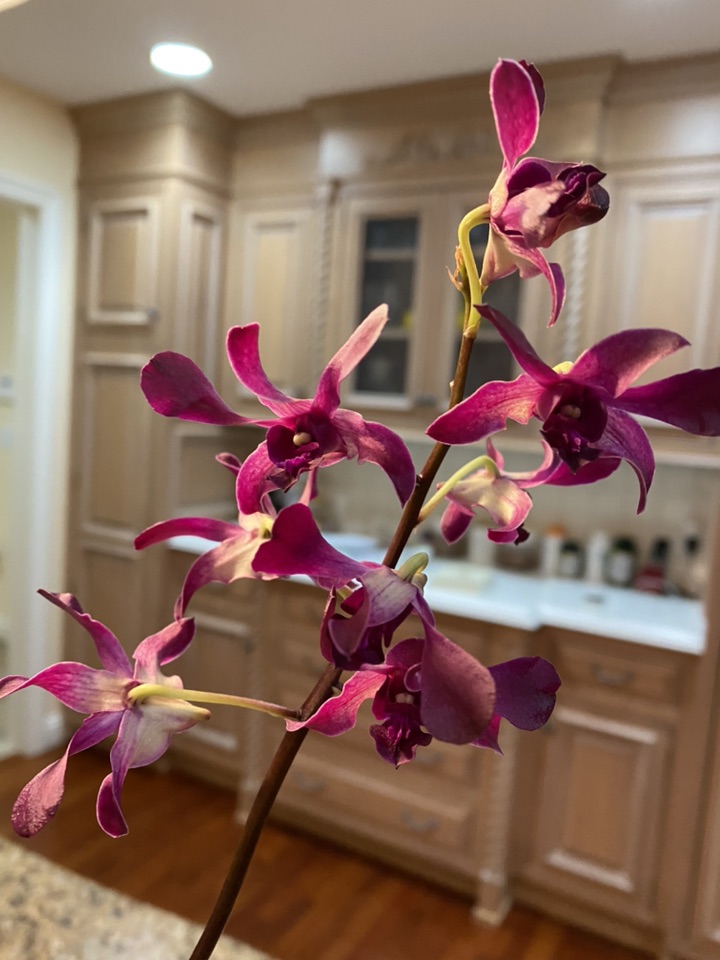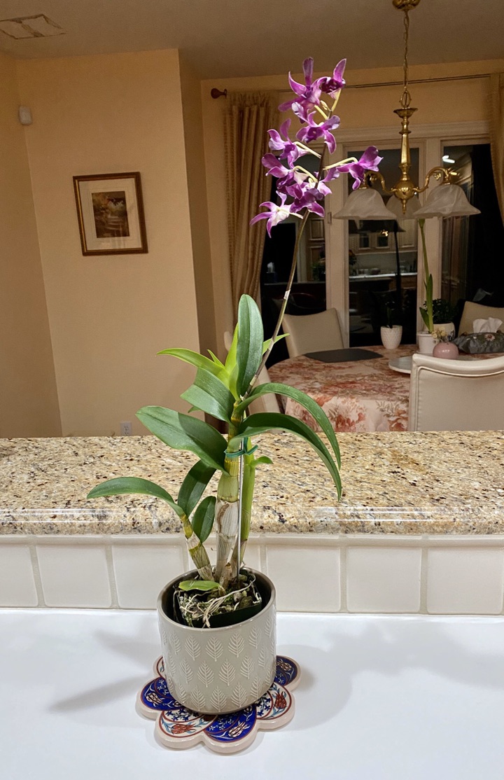 回来时当然不能空手而归呀,买了一盆石斛 Dendrobium Hawaiian Punch( 前三图)