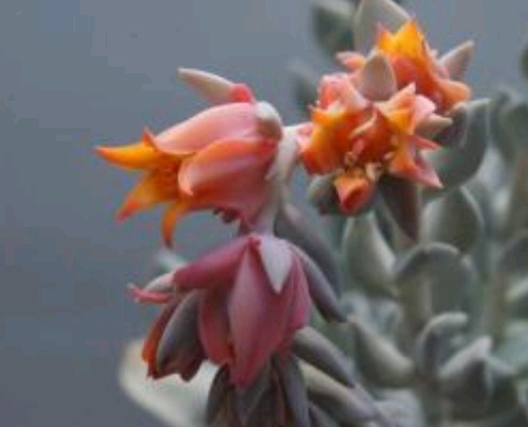 花朵为太阳的颜色,有黄有橘色,非常漂亮。花瓣反面是粉色,这样搭配起来特别好看。拟石莲科或属的花基本上都有一种特点,那就是像小铃铛。