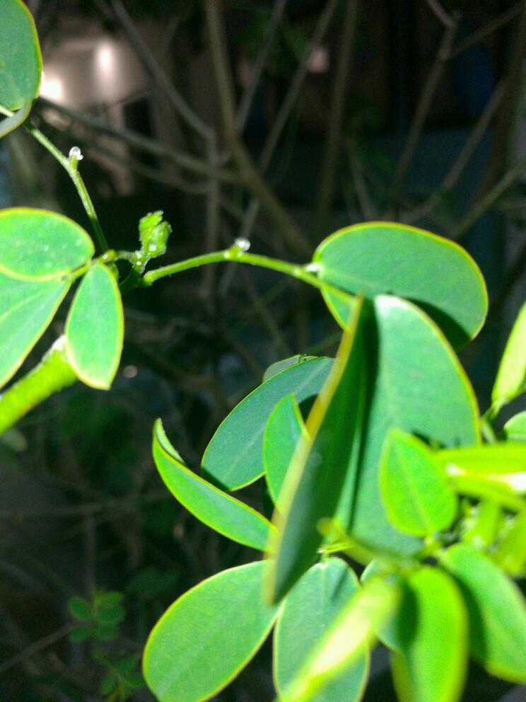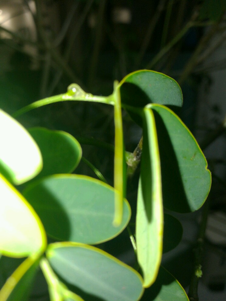 但是它一直有一个让我蒙逼的地方,就是它从来我们家第二天的时候就从叶子的下端分泌出一种亮晶晶的液体,一片叶子只有一点点,黏黏的,我尝了一下,甜甜的,我也没出现什么不适症状。