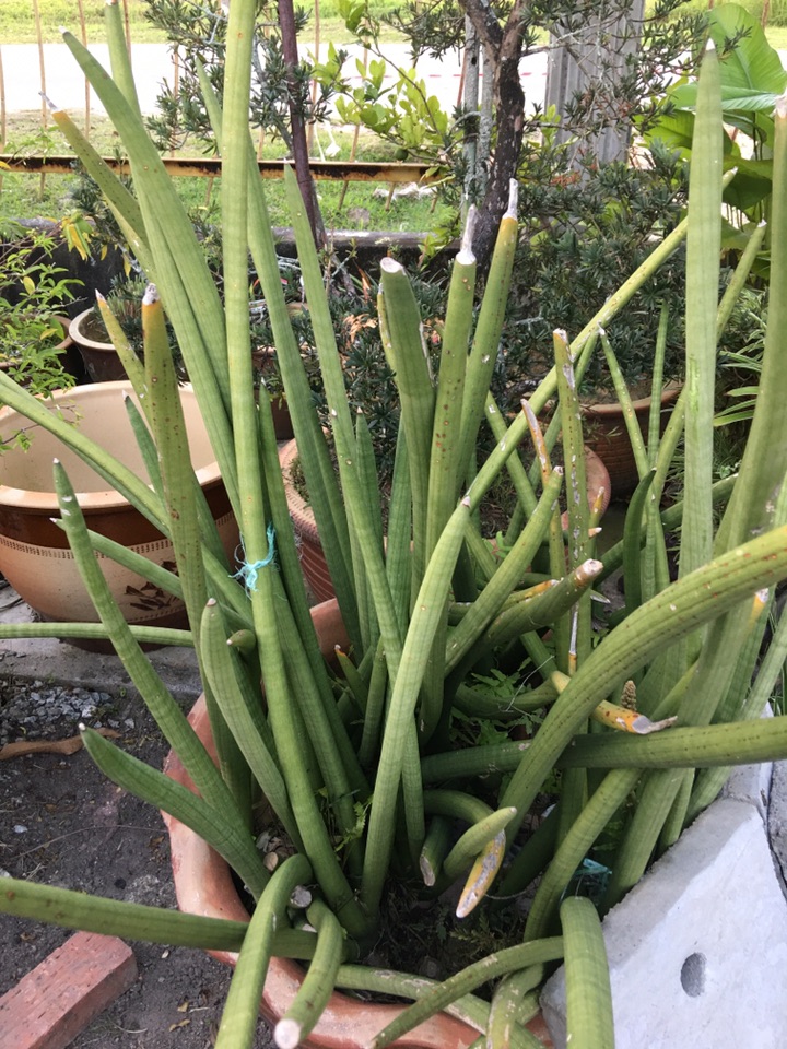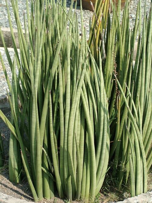 棒叶虎尾兰圆柱形的叶子粗壮地直立着,酷似一片片长得很好的北方大葱。