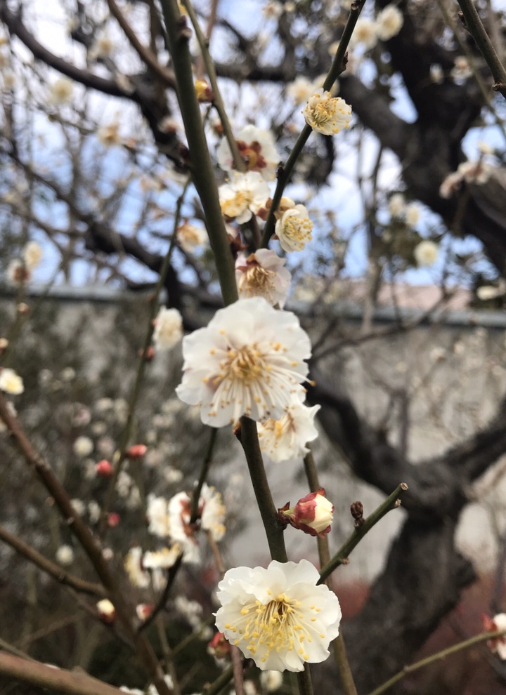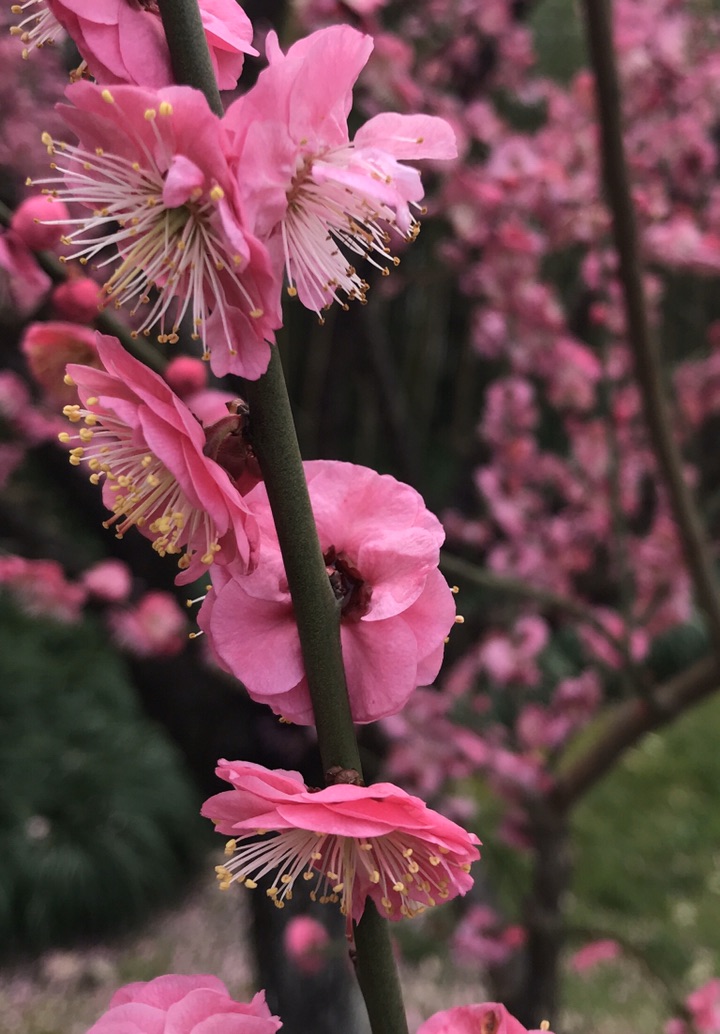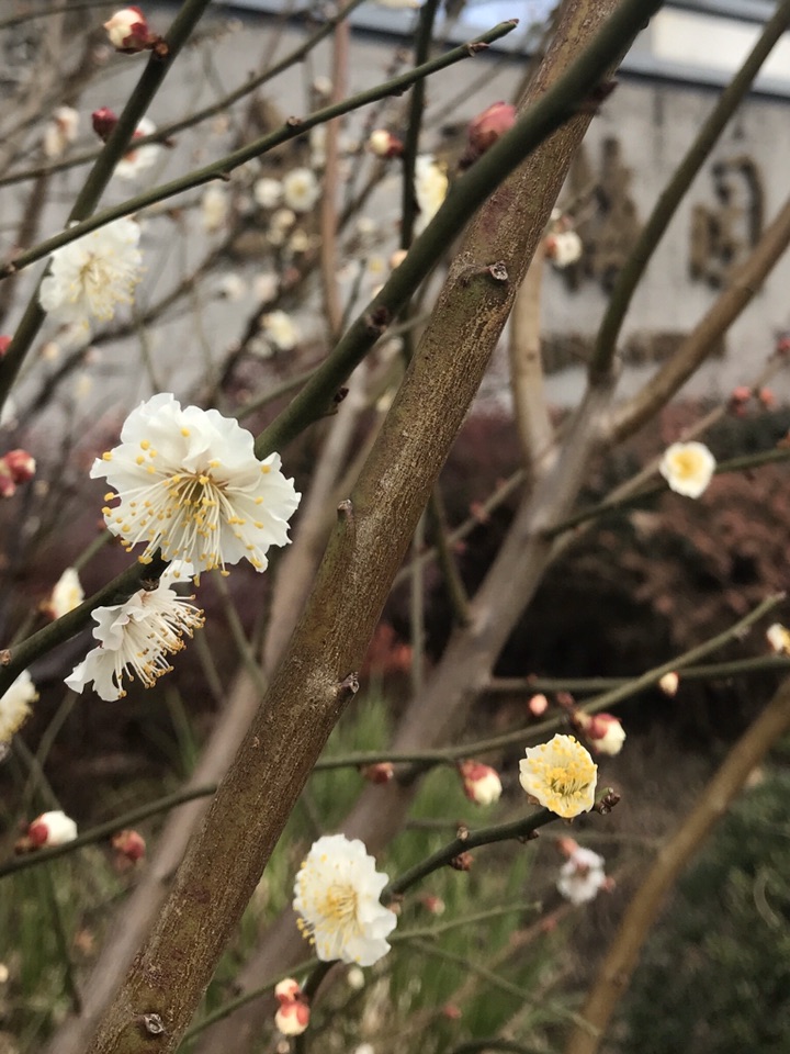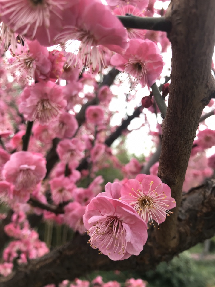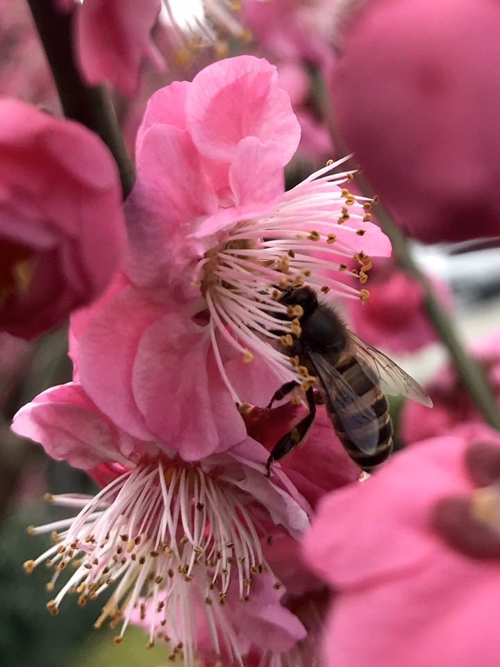 白梅,宫粉梅,还有勤劳的蜜蜂