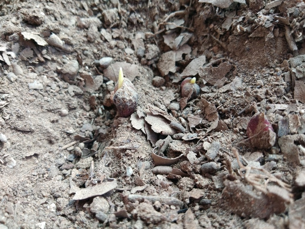 暑假去山里看见了许多卷丹百合,正在开花期,叶掖处长了许多黑色的小株芽,有些甚至已经生根了,就摘了一些想带回来种,疫情严重,在家里闲着无聊开始摆弄盆栽,意外的发现之前埋下的株芽发芽了,果然春天到了,这样小小的株芽长至可以开花需要2年左右,也不知道他之后会是什么状态,毕竟我也没有种过,一起期待吧!