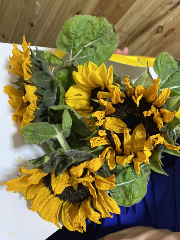 向日葵(学名:Helianthus annuus L.):是菊科、向日葵属的植物。因花序随太阳转动而得名。一年生草本,高1-3.5米,最高可达9米。茎直立,圆形多棱角,质硬被白色粗硬毛。广卵形的叶片通常互生,先端锐突或渐尖,有基出3脉,边缘具粗锯齿,两面粗糙,被毛,有长柄。头状花序,直径10-30厘米,单生于茎顶或枝端。总苞片多层,叶质,覆瓦状排列,被长硬毛,夏季开花,花序边缘生中性的黄色舌状花,不结实。花序中部为两性管状花,棕色或紫色,能结实。矩卵形瘦果,果皮木质化,灰色或黑色,称葵花籽。野生向日葵栖息地主要是草原以及干燥、开阔的地区。它们沿着路边、田野、沙漠边缘和草地生长。在阳光充足,潮湿或受干扰的地区生长最好。原产南美洲,驯化种由西班牙人于1510年从北美带到欧洲,最初为观