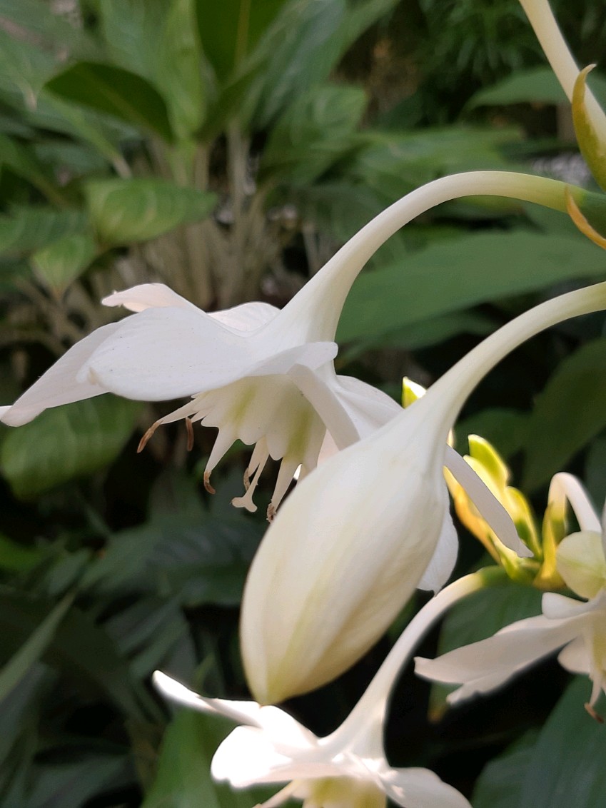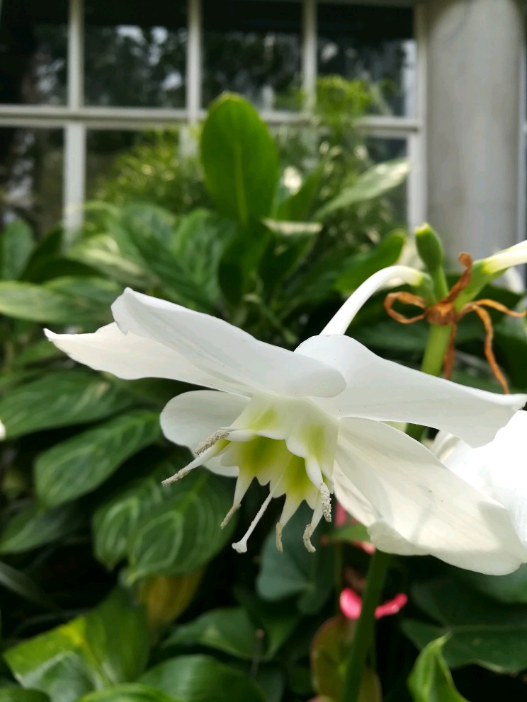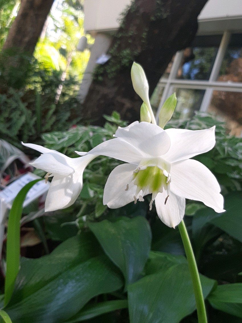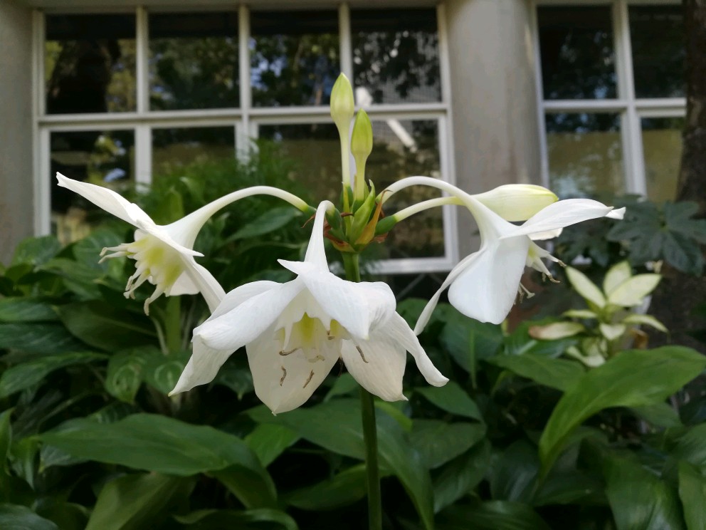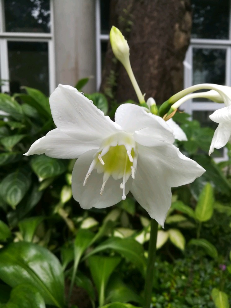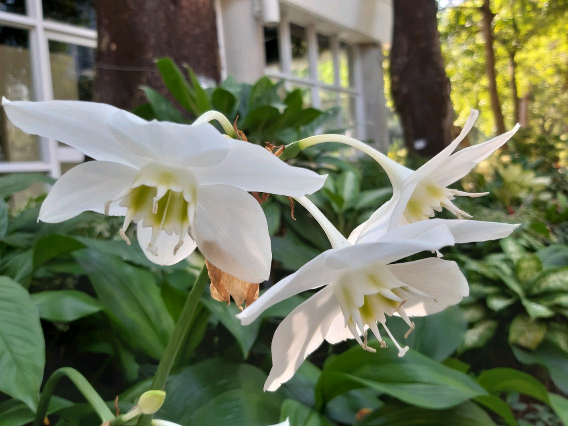 南美水仙,又名亞馬遜百合。多年生草本花卉。葉片寬大,深綠色有光澤。花莛長50~60厘米,頂生傘形花序,著生5-7朵花。花為純白色,花徑7.5厘米,有芳香。花冠筒圓柱形,中央生有一個副花冠,花瓣開展呈星狀。花期冬春季。姿態優雅,亭亭玉立。花朵碩大,潔白無瑕,清香四溢,是室內盆栽花卉的佳品。