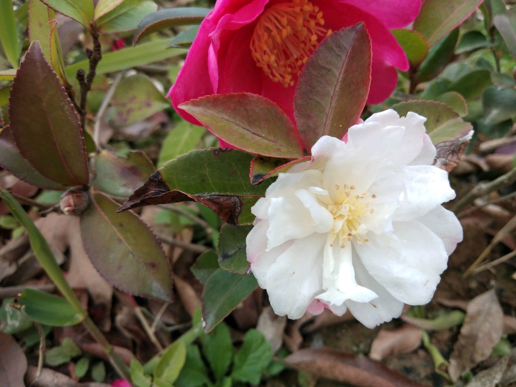 红白搭配,错落的点缀着暂无多春色的地面