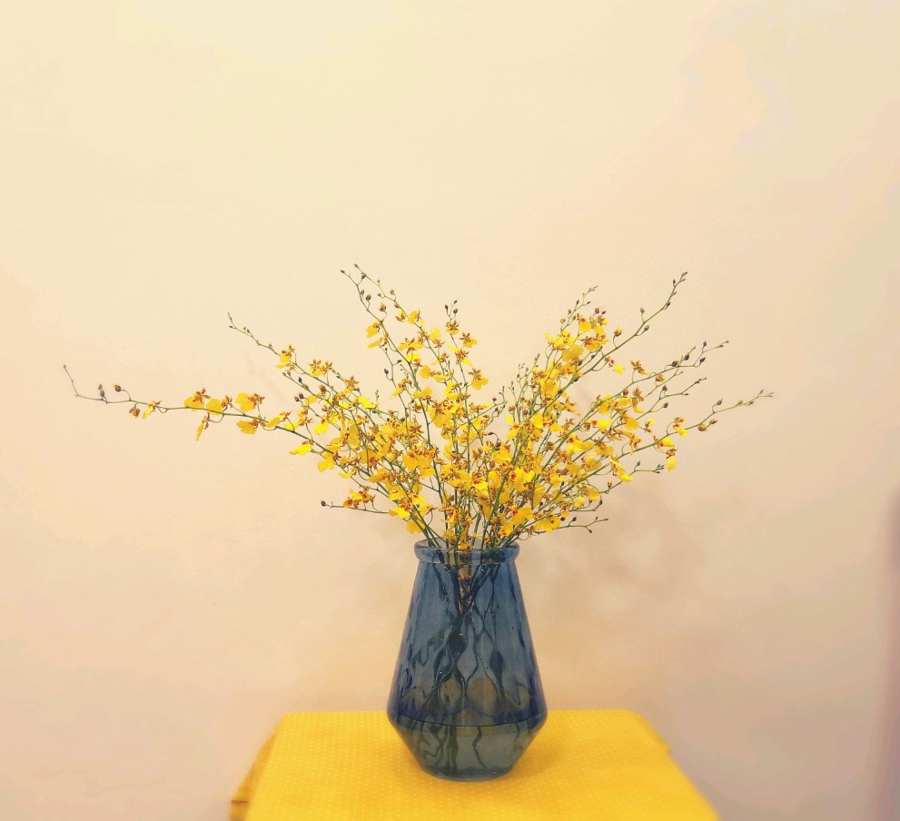 插花真的可以让人快乐,这是真的。我不知道我爱花的程度是属于什么级别,但对着花花草草会心情很好。今晚插插花,调戏一下跳舞兰。