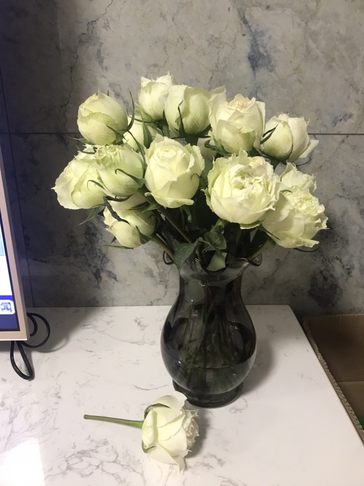 买了一束白玫瑰,但花开的凌乱样子一度怀疑是月季,因为平时对玫瑰买的少,所以还需请教下大家,谢谢