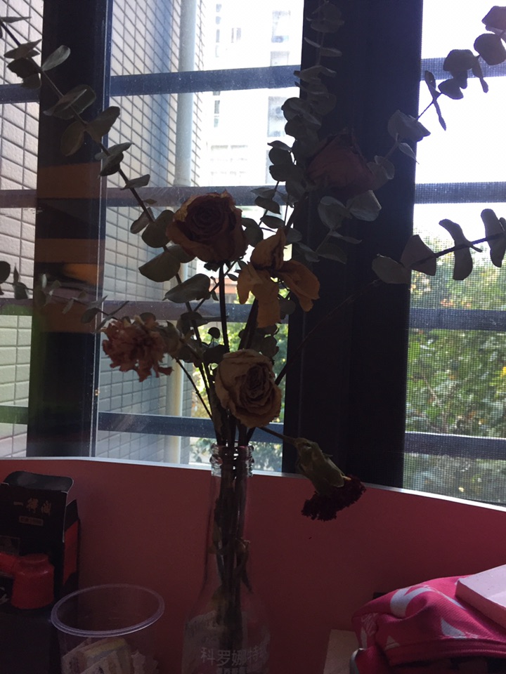 第一个是我之前用干玫瑰花做的,第二个是我最近用粉色小菊做的,最后一个是我第一次用黄色的干玫瑰花和另外两种干菊花做的。好看不