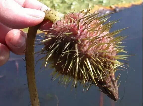 这个酷似鸡头的果实里面藏着的其实是超市干货架上很普通的一种食品——芡实,故芡实还有另一个名称叫鸡头米。