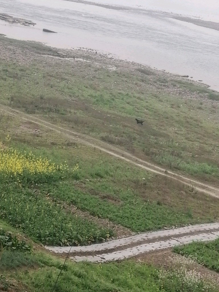 我在拍油菜花时,不小心拍到了一只羊(看到那个黑色的东西了吗?那就是羊)