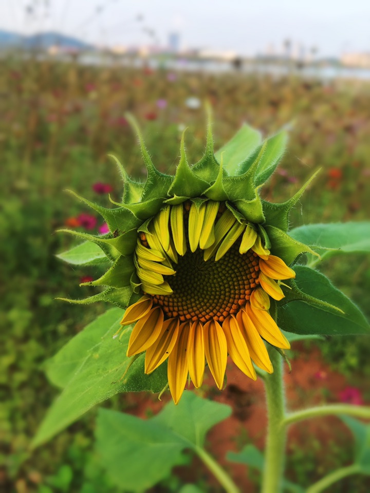 含苞欲放的向日葵,向征着蒸蒸日上,笑逐颜开