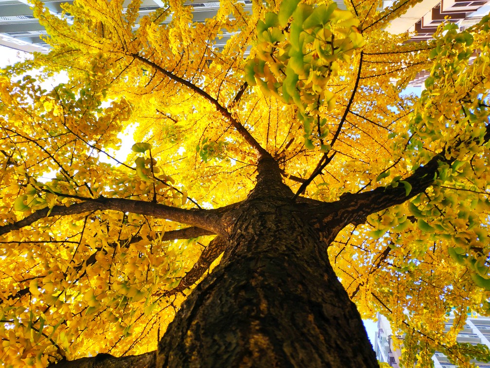 秋天的色彩在银杏树上尽呈现