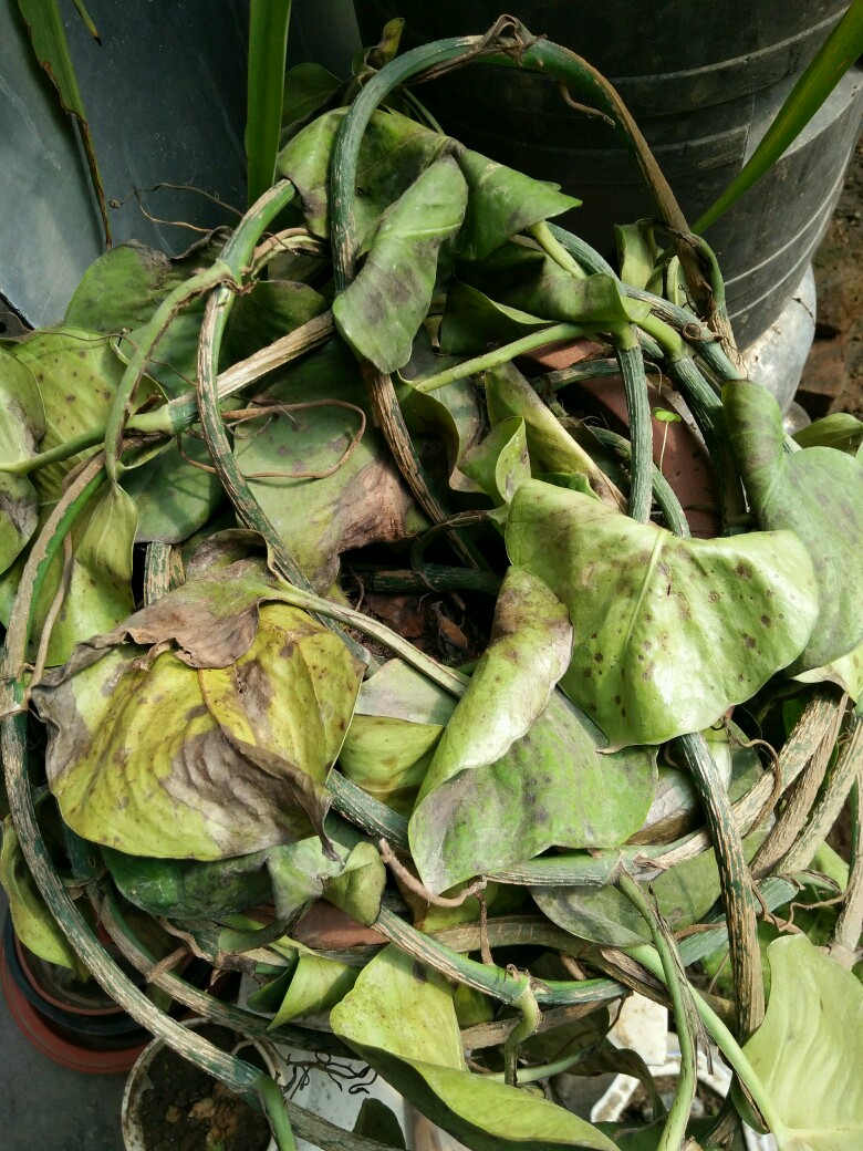 这盆绿萝养了有两年了,去年冬天在花棚里可能通风不好,开春变这样子了,咋办啊?