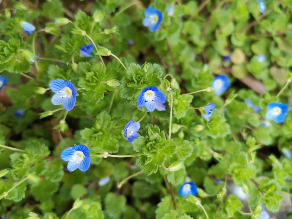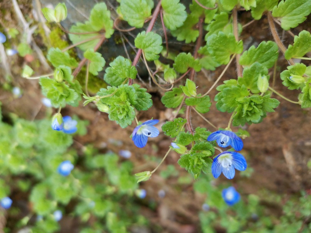 中午散步厂区对面的菜地,看到一片婆婆纳