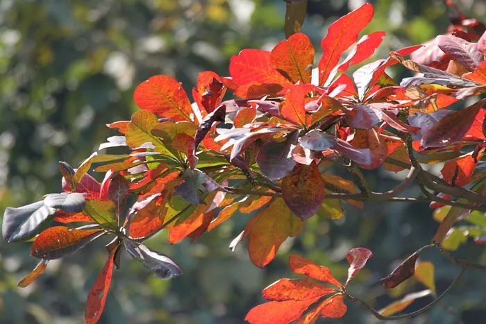 它冬天叶子翠绿,反而在春天万物复苏时,叶子变红,掉落,然后迅速长出一树新的绿叶。让人在不经意间觉得它从来没有落过叶。