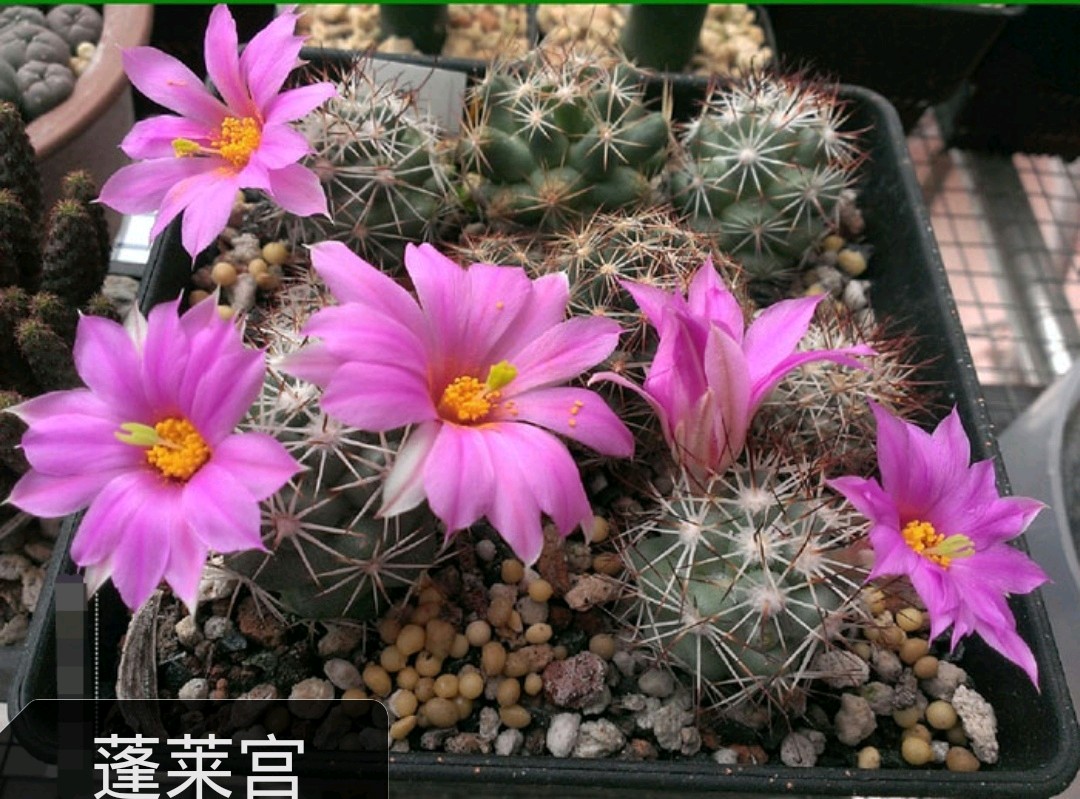 蓬莱宫仙人球,是仙人掌科乳突球属美花球,球体直径约4-8cm;花为鲜艳的玫瑰红或深粉红,直径3-6cm是一种极为吸引眼球和刺激购买欲望的品种,繁殖可播种。