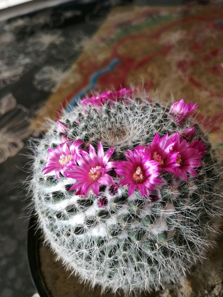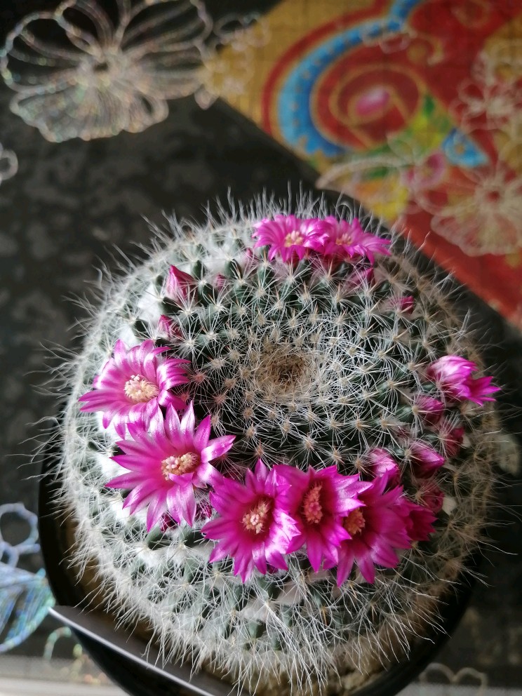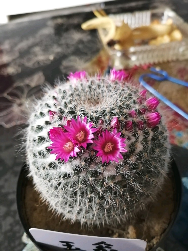 身布满白色软刺,春天会有桃红色小花围绕球体形成一个圈,非常别致。喜欢充足的阳光,耐旱,干透了再浇水,避免将水浇到球体。冬日放在室内向阳处,注意保温,同时减少浇水或断水。