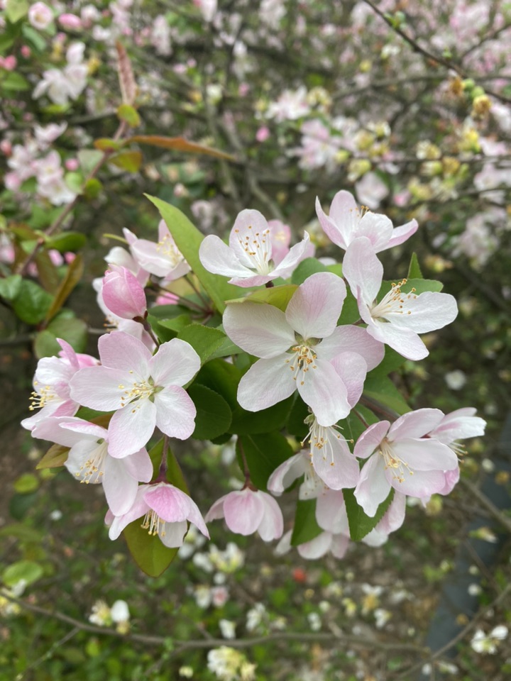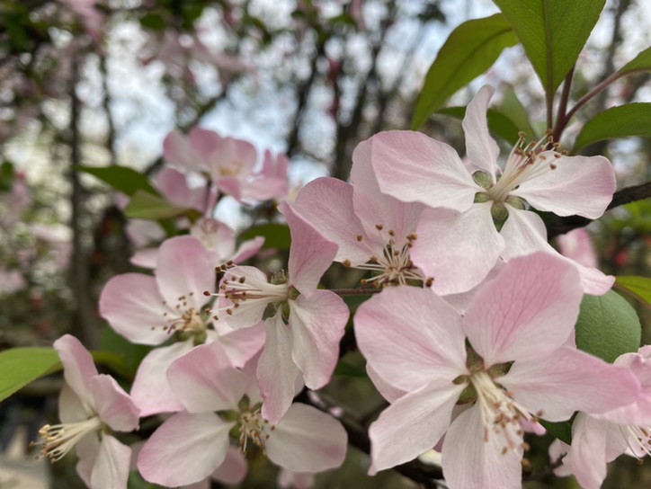 西府海棠别名海棠花、解语花、海红等。其花形较大,朵朵向上,生机勃勃。初时颜色艳丽红似火,后则渐变粉红。西府海棠最容易辨识的特点就是收拢并且不断向上的树势,因此分叉窄树形瘦均为其特点。除此之外西府海棠具有淡淡清香,花朵既香且艳,令其他花朵自愧不如。