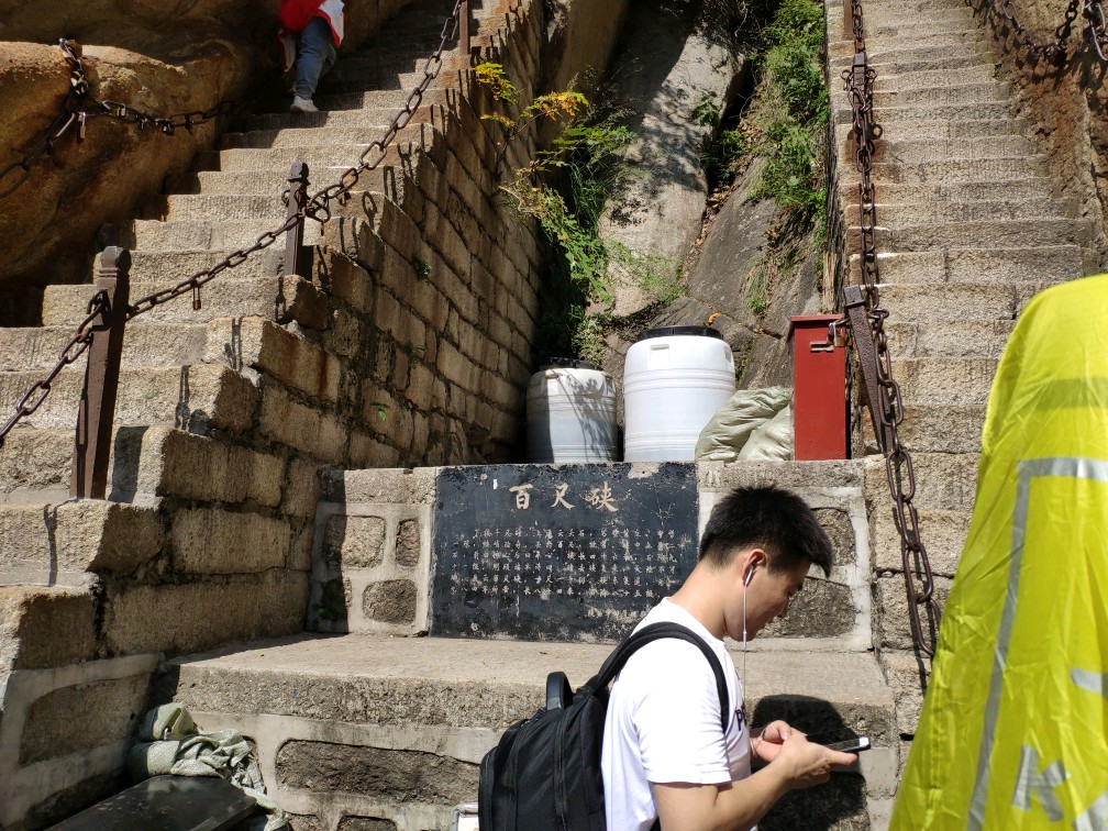 华山百尺硖,狭窄步道,陡峭的台阶!