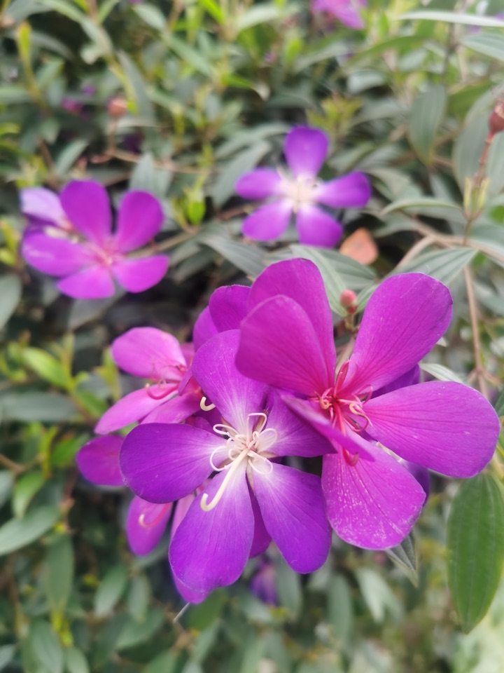 巴西野牡丹(拉丁学名:Tibouchina seecandra Cogn.)是野牡丹科常绿小灌木,株高0.5-1.5米。枝条红褐色;叶对生,椭圆形至披针形,两面具细茸毛;花顶生,大型、5 瓣,深紫蓝色;花萼五片,红色,披绒毛;蒴果坛状球形,一年可多次开花。原产巴西低海拔山区及平地,中国广东、海南等地有引种栽培。它的植株清秀,花期长,花朵艳丽,非常适合庭园、绿地的绿化、美化。