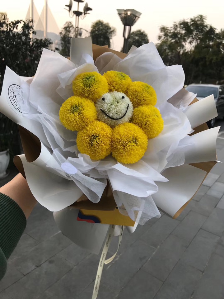 乒乓菊是菊科的一种植物,因为外形像乒乓球而得名,有黄、绿、白、红四种颜色,常作为鲜切花使用,原产自日本。乒乓菊造型讨巧、可爱,而且保鲜时期较长,代表爱情圆满长久。