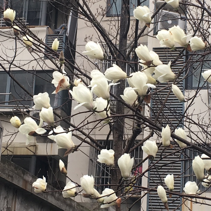 我先说的,一朵朵白玉兰花,郁金香一般的花骨朵儿,就像长江大桥上的天灯,为别人照得靓她他。