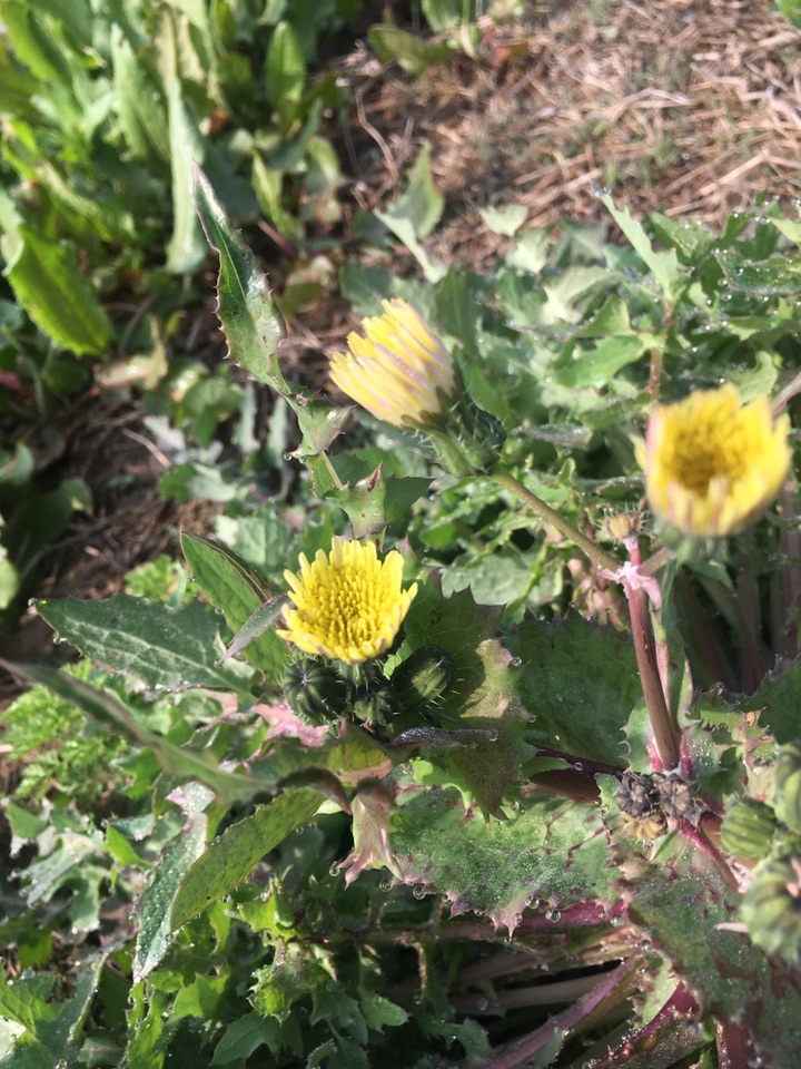 我们在室外呢,还看到了长小灯笼一样花的栾树,还有油菜花和火车头在一起,山茶花,蒲公英开花了......阿拉伯婆婆纳还羞涩的没有展开,还有枇杷树,结香,还有紫叶李...他们开花开得太快了,败的也太快。还有苦苣菜——苦菜花。