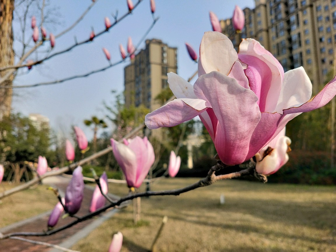 白色纯洁雅致,紫色热烈妩媚,还有白色中夹杂一点紫色的是白玉兰还是紫玉兰?