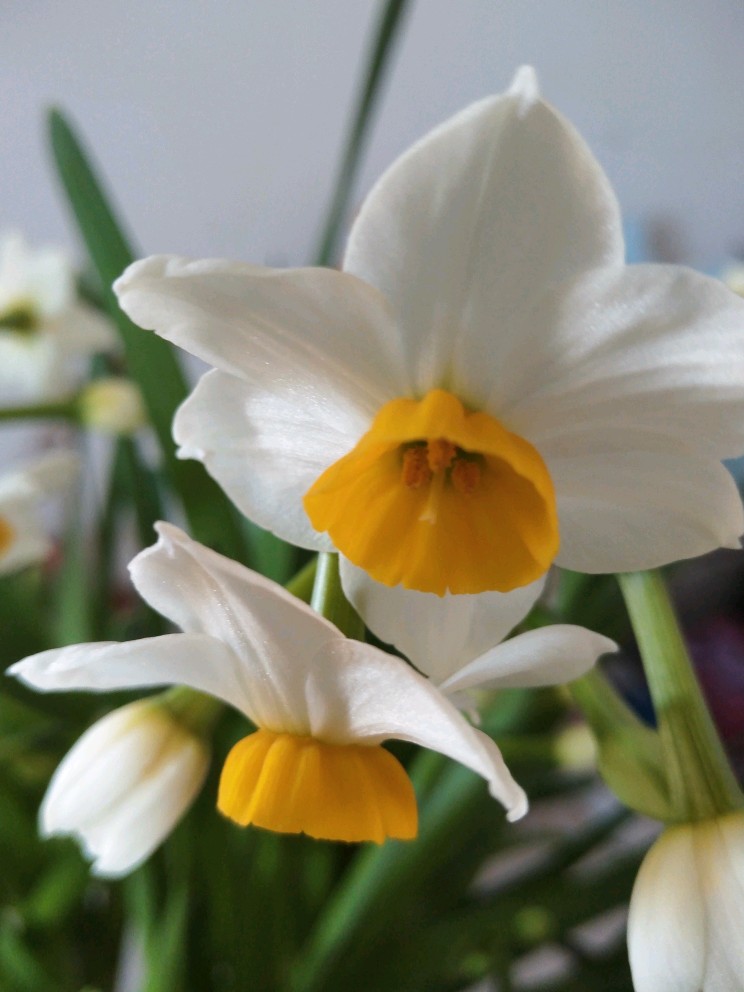 第一次种水仙很意外和惊喜,花香四溢,结白如糯米,小巧如玲珑...