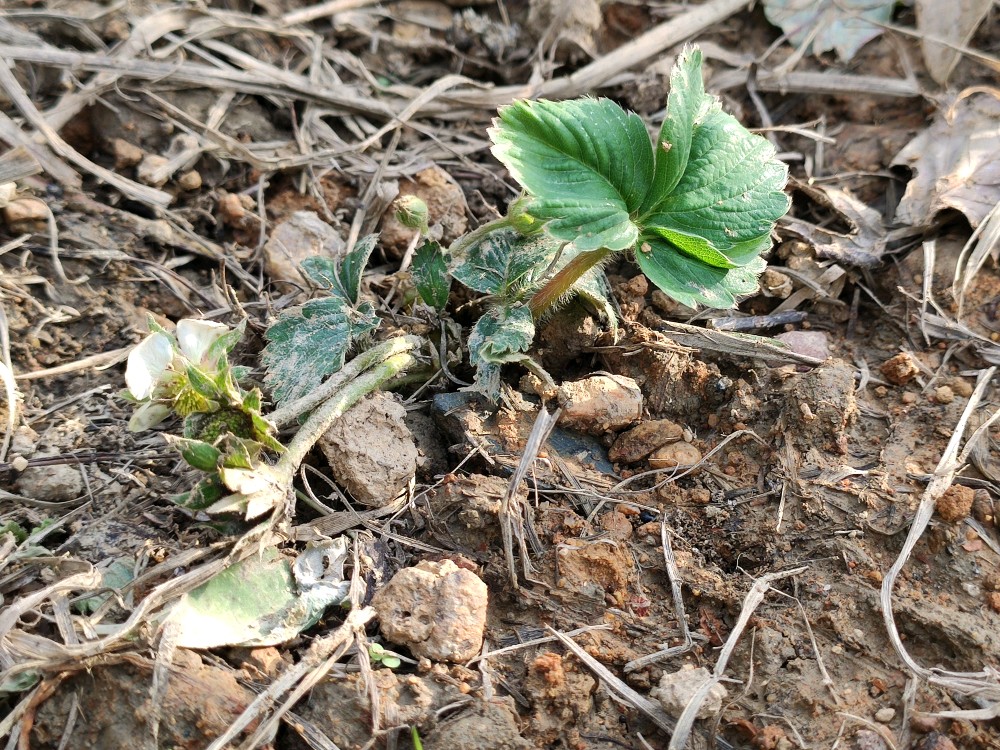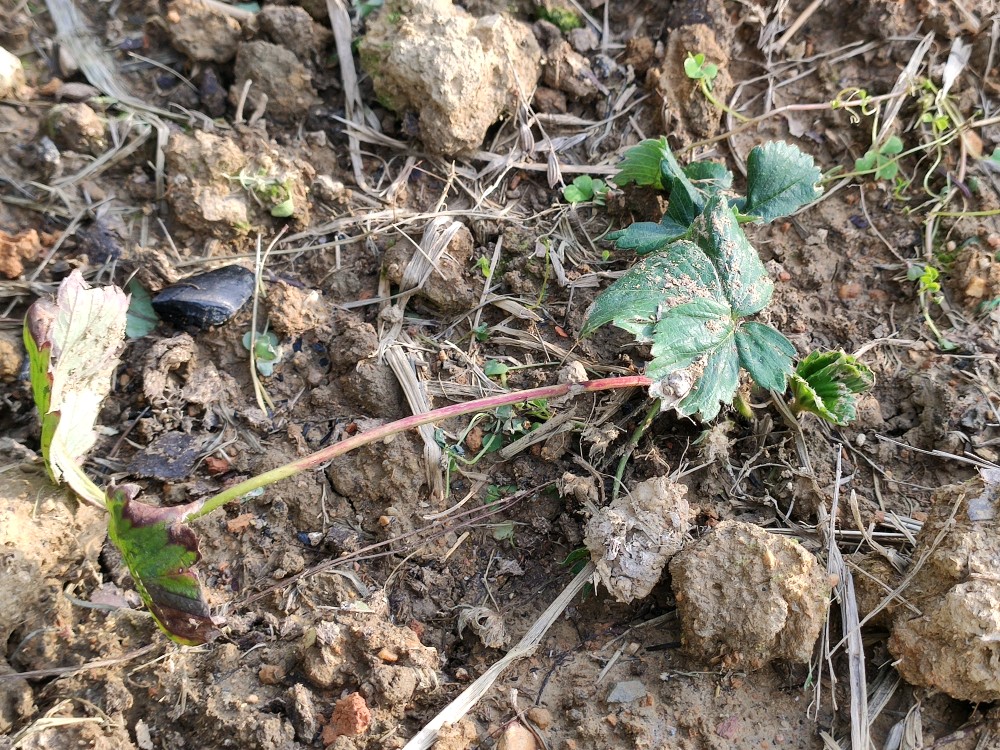离家17天后看到的样子,应该是谁家的鸡跑过来捣乱了吧,草莓基本都被稻草掩埋了(已稍稍扒拉过)还一度以为只剩5棵了,加上下雨,直到前天才把第六棵扒拉出来