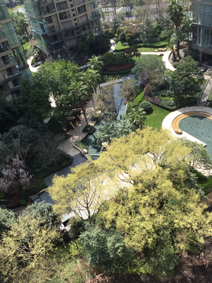 小区里柳树长新芽,樱花盛开了,小区里在春天一幅生机盎然的景象。