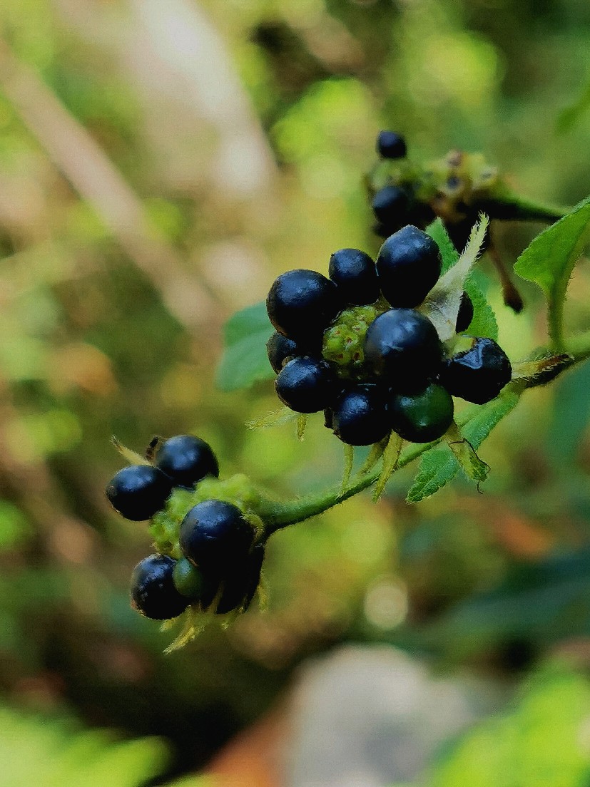 果熟了转黑,挺甜的,绿色的生果也有用,可用作迫啪子,于是就摘了起来。一不注意,枝上的刺就会扎过来,皮破血流,立即从枝端採些嫩叶咬碎了敷上,一会就止血无碍…