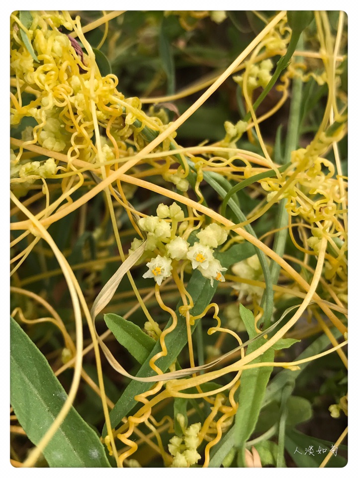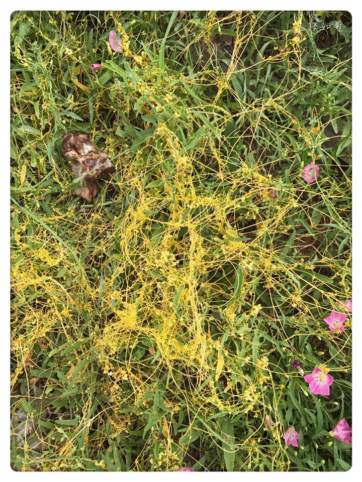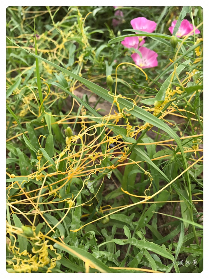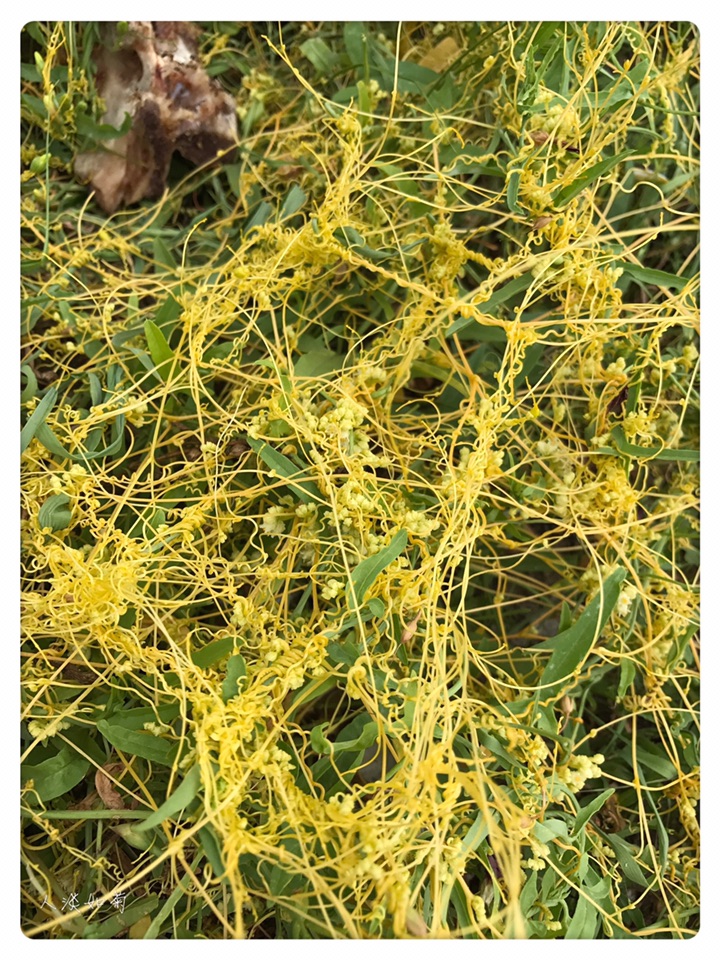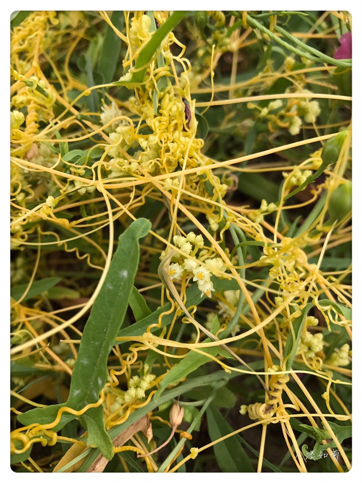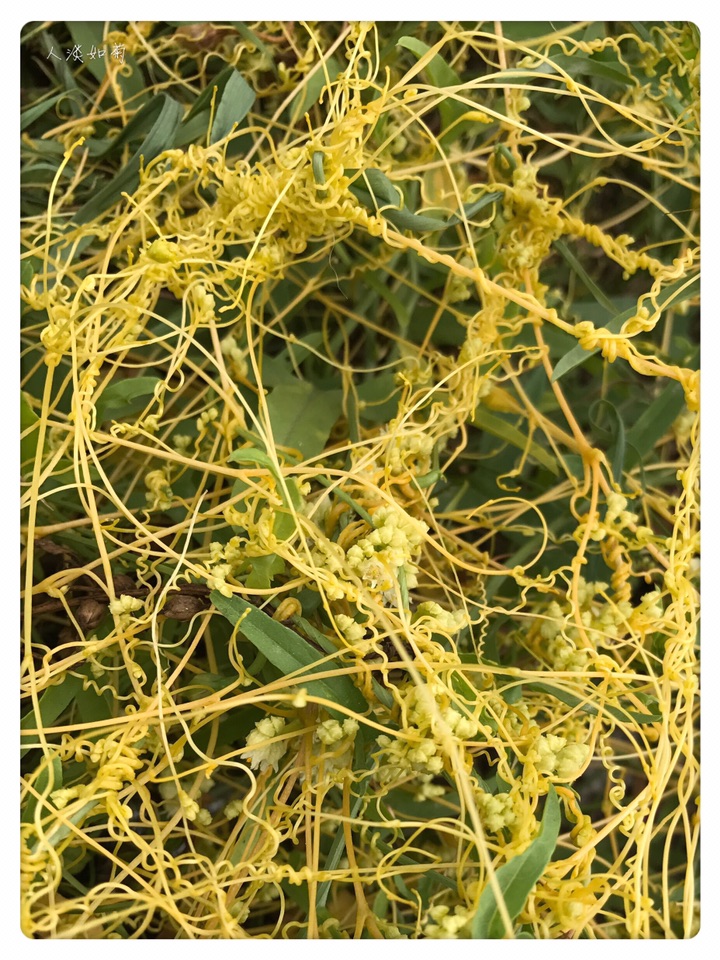 在通辽市科尔沁左翼后旗的一个服务区见到菟丝子很意外也很兴奋,这是我第二次见到菟丝子,第一次是在我搬家的第一年在我的小院里发现了菟丝子,此后便没再见。