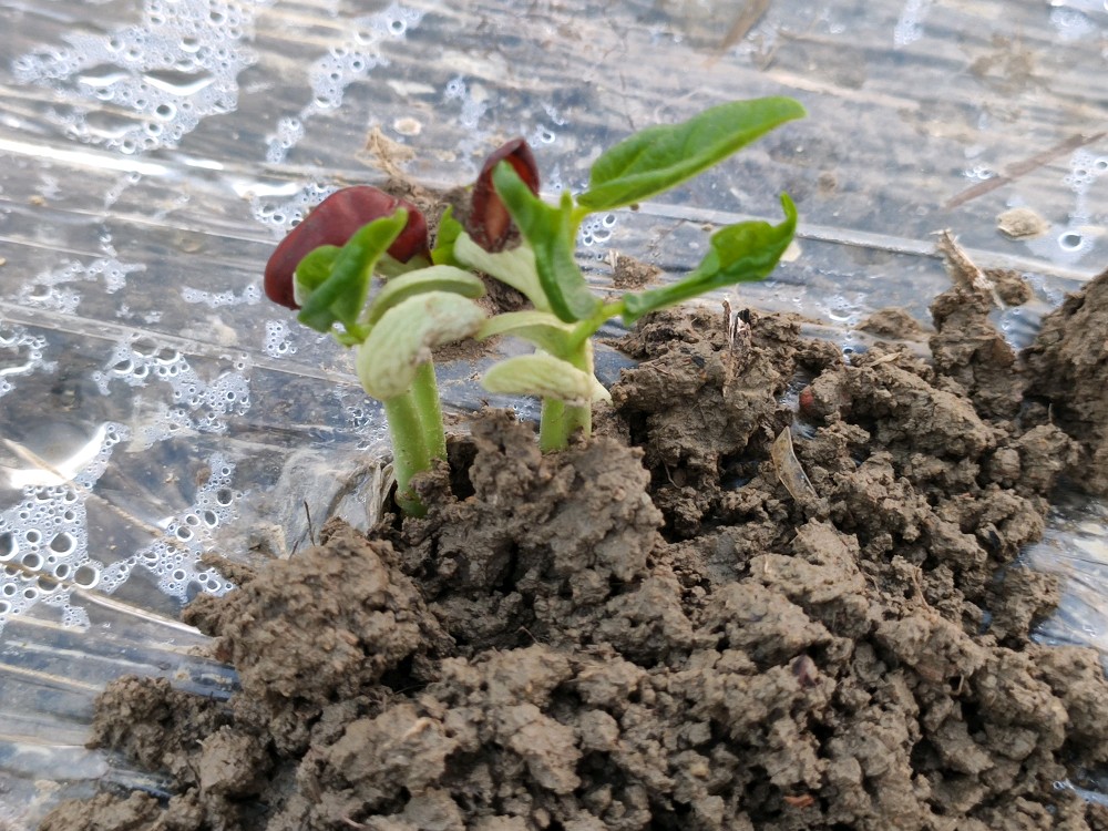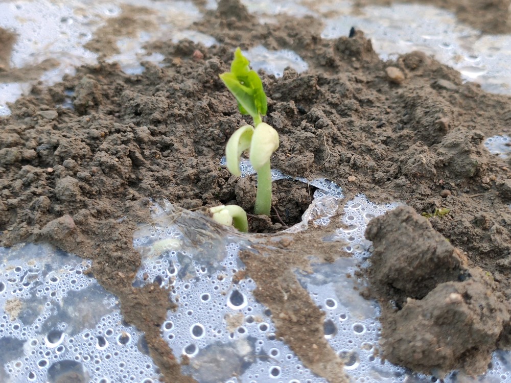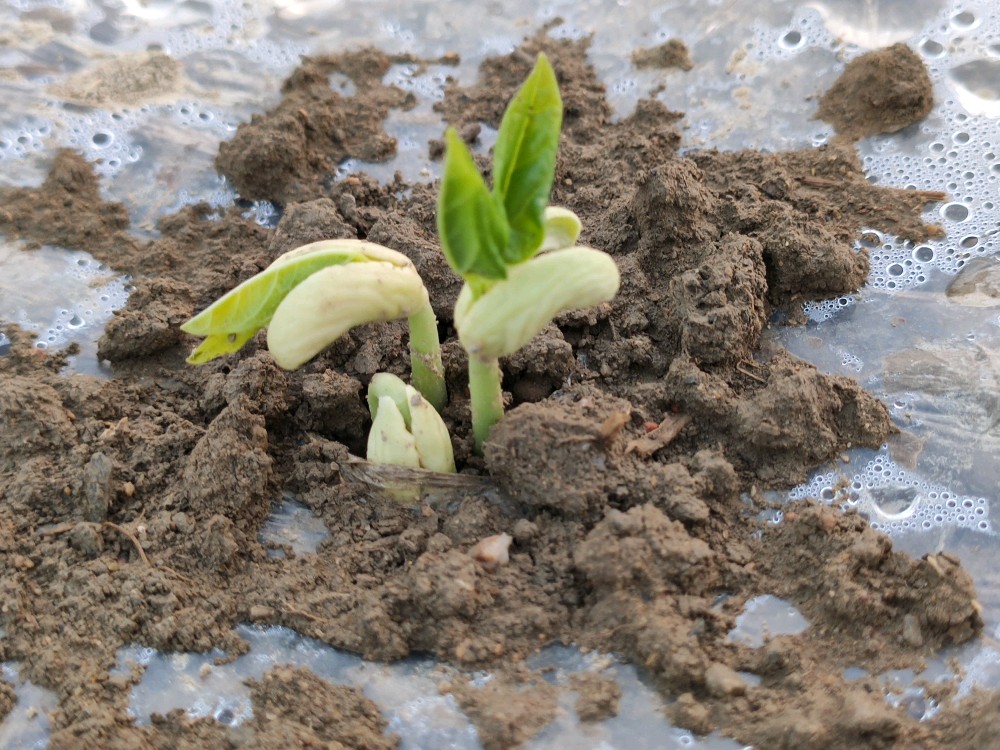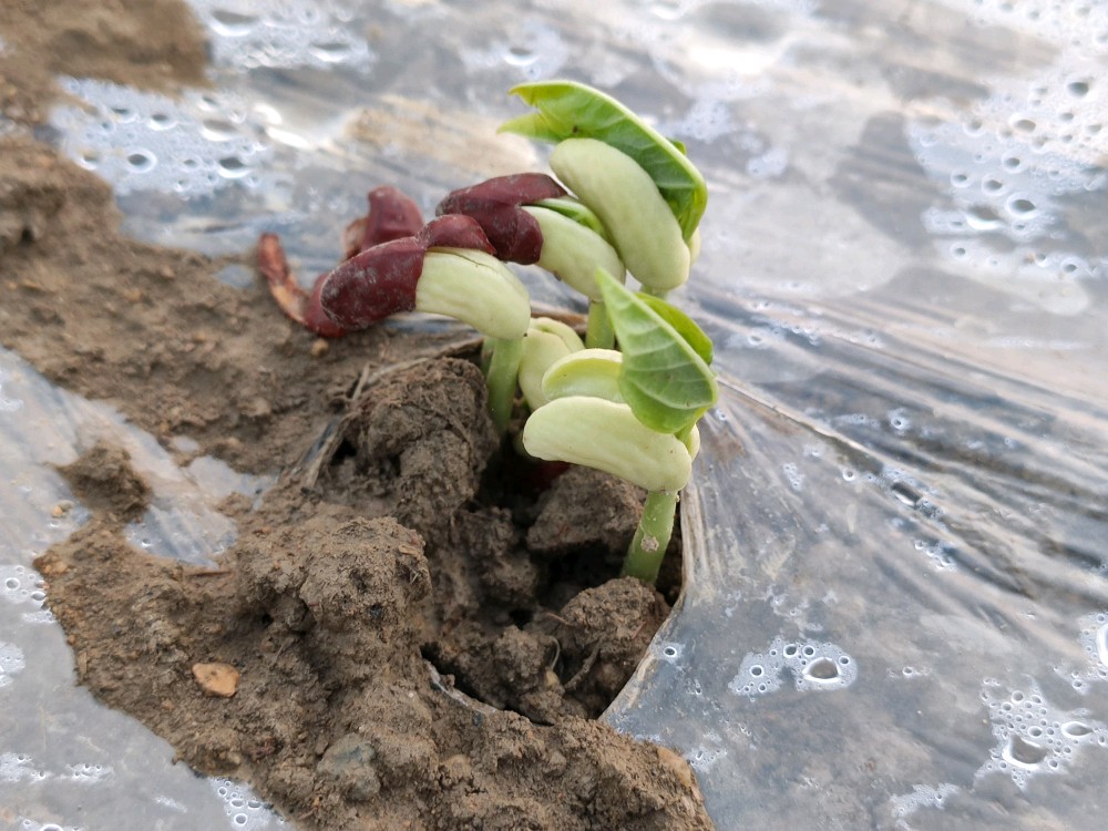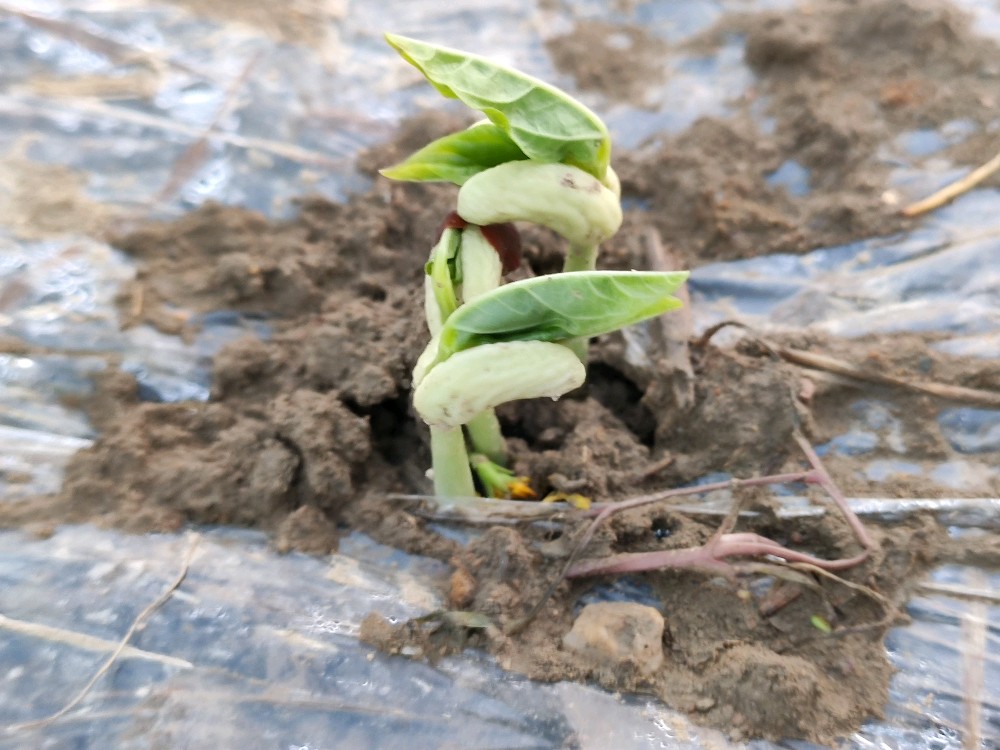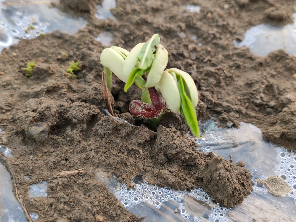 这是自己家留的种子,种了10棵全长出来了。同时间还买了另一种豆角种下却还什么动静都木有