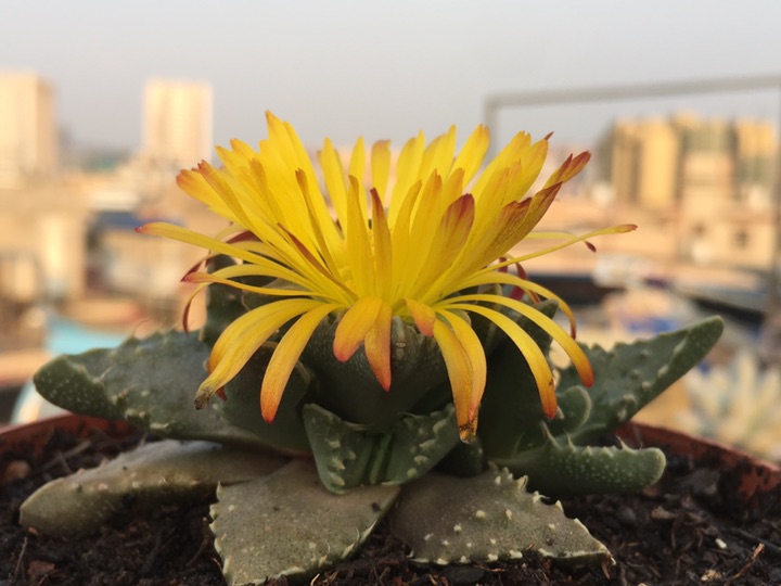 黄花照波
