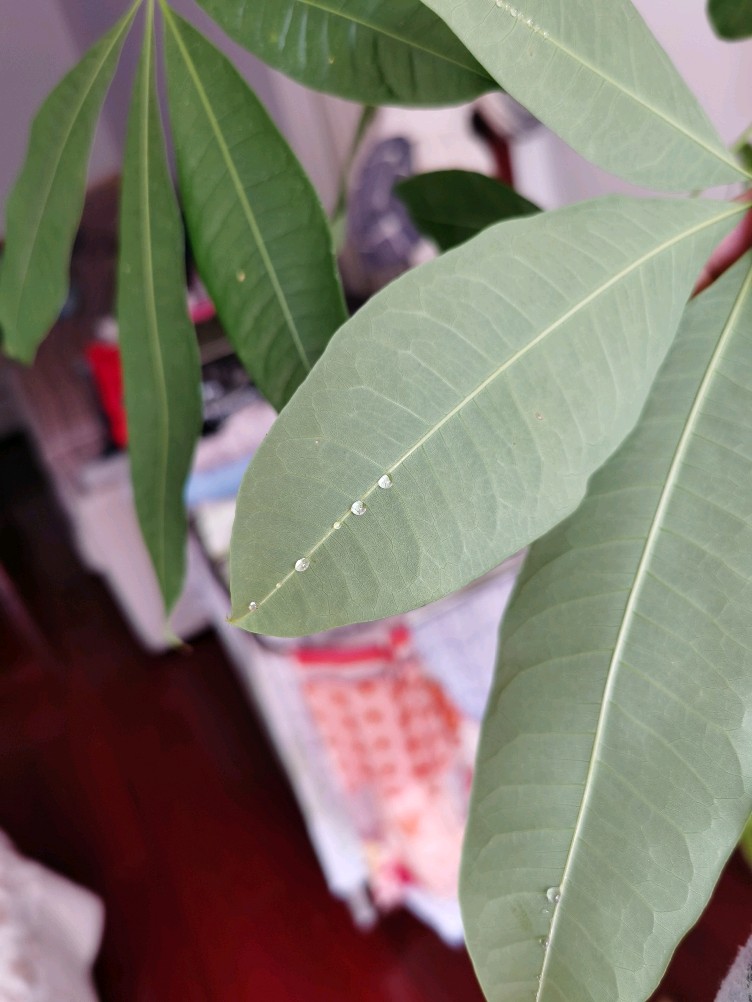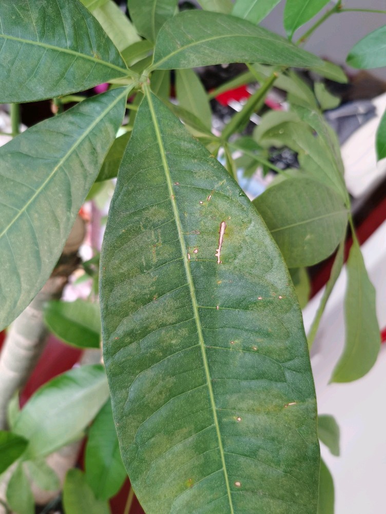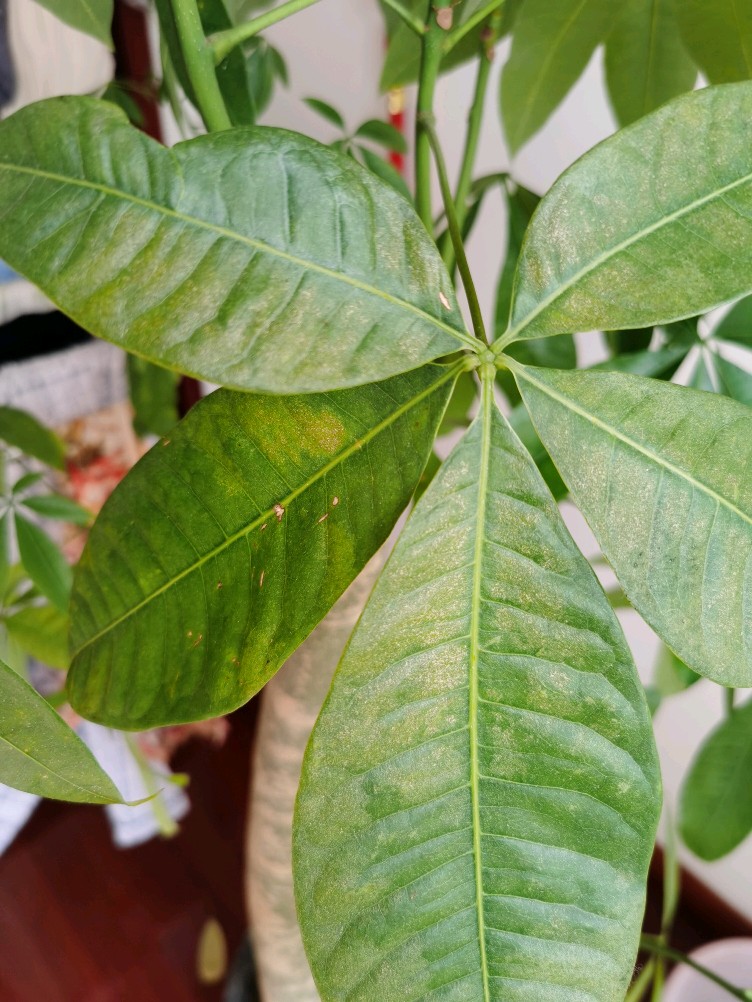 家里养的发财树,叶子发黄,叶背有粘性液体,请问这是为什么,怎么养护?