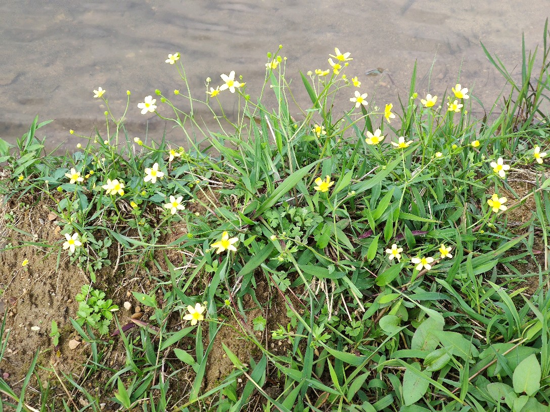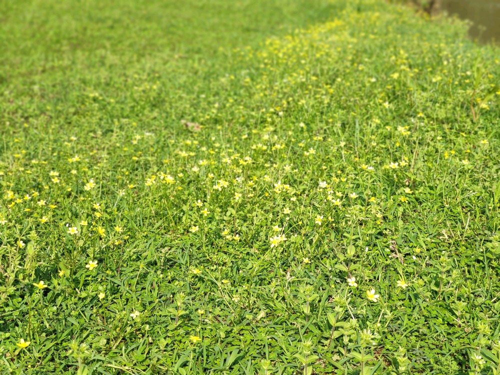 很喜欢这片邻水的小黄花,开的烂漫又热闹