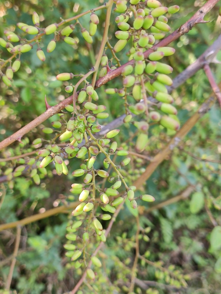 小时候物质匮乏,山野中的很多植物都成了我们的玩具或者零食,多花勾儿茶却是个两者合一的存在。种子差不多图片样的时候是玩具,多而密的串串生长被我们视为取之不尽的子弹之源,至于枪是什么?记忆却有点模糊了。而等它便紫变黑,又可以抓一把直接放嘴巴里嚼,即便我是不吃这个的,但还是看别人吃的津津有味……