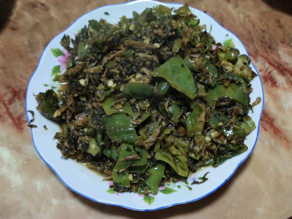 晒好之后什么样没拍,这是初次做的特色菜梅干菜辣椒。由于老妈顾虑晒太干了,她提前用水泡发了很久,所以味道有点不大好。老爸却说,这次的梅干菜是有史以来的好吃。还真是萝卜青菜各有所爱啊,我就喜欢吃不过水直接用油炒的,那真叫一个香嘛香得嘞
