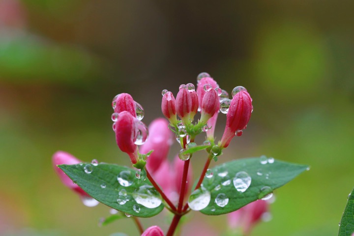 春雨中的垂丝海棠美啦美啦