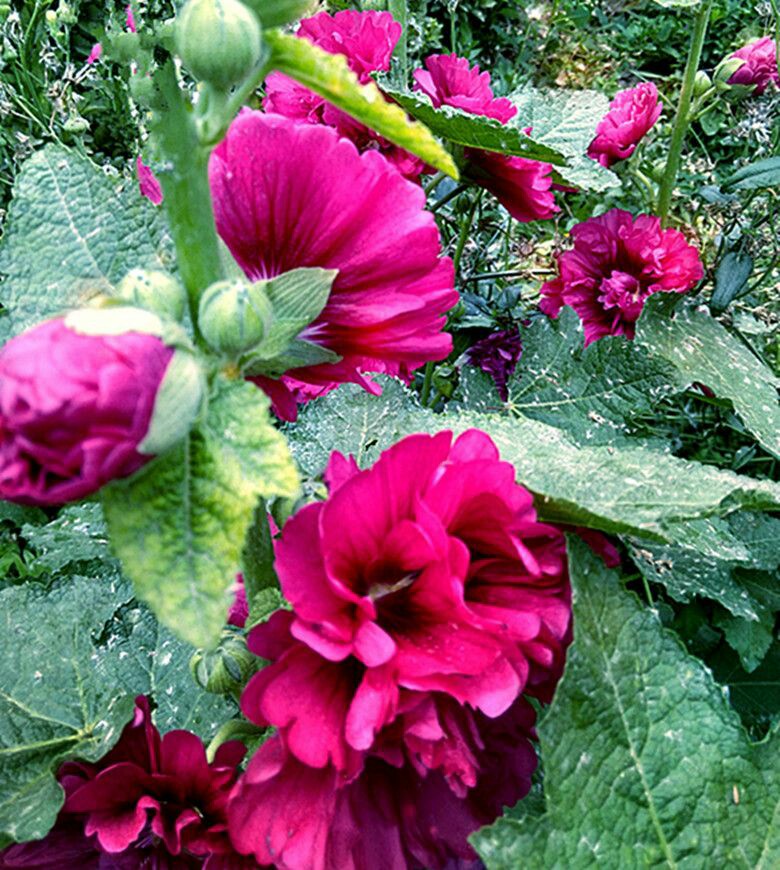 蜀葵花色艳丽,朵形较大,有大红、朱红、桃红、粉红、墨红、黄、白等多种色彩