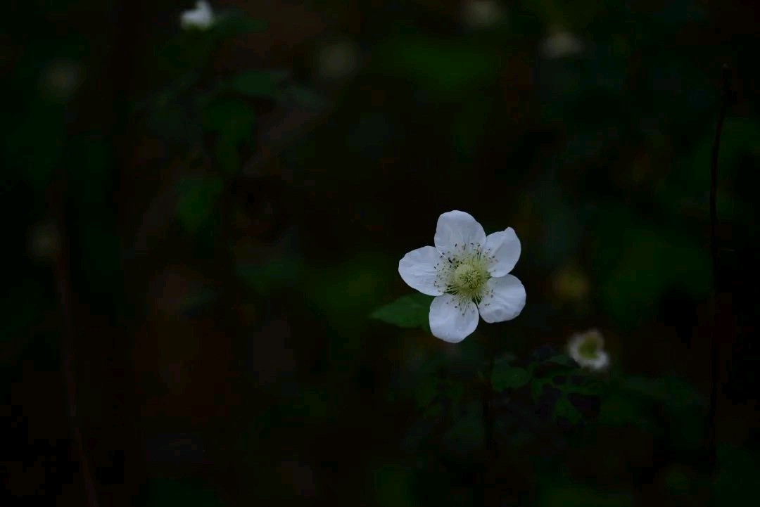 这个季节,正是蓬蘽花开的时候。山中一丛一丛的白色花朵,在我看来却不似往年的清新娇美。